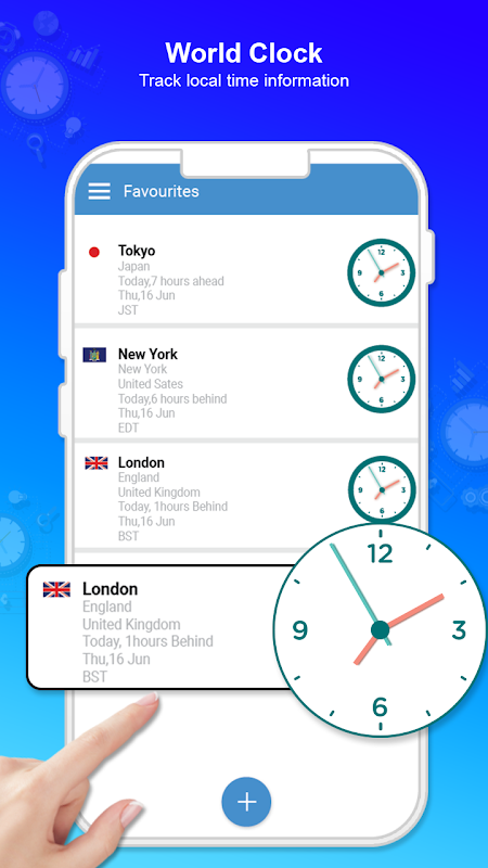 Be aware of all countries time with the best world clock application.World clock:All cities time zones that let’s you know about the exact and accurate time of the current city you search for. Now just search your favorite country or city and watch the current time of it. This app works of GMT Time zone that means it follows an international timing zone. World time of all regions are been included in this city. Watch country time has an amazing analogue and digital world clock that helps you to read the time easily and you can make enhancement while changing the countries and saving them in the list. It Automates your phone to view all countries world time within seconds. More cities and regions may be written here that are been presented in this app of world clock application for example : current time at paris , Night time of tokyo , morning time at kerela. Similarly many other countries are been added in this application.
