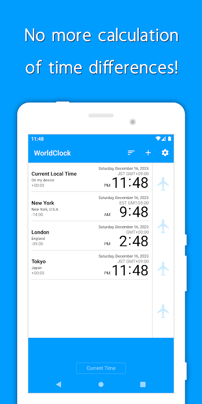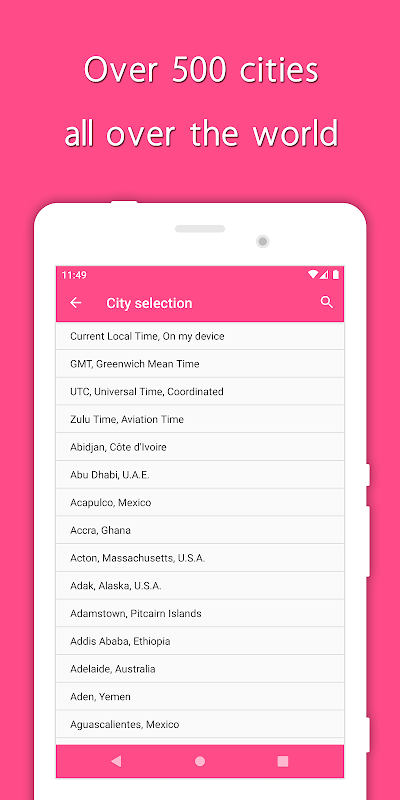 Disclaimer:This application has been built with extreme care and attention. However, it does not guarantee the accuracy of the names and times of the cities displayed.