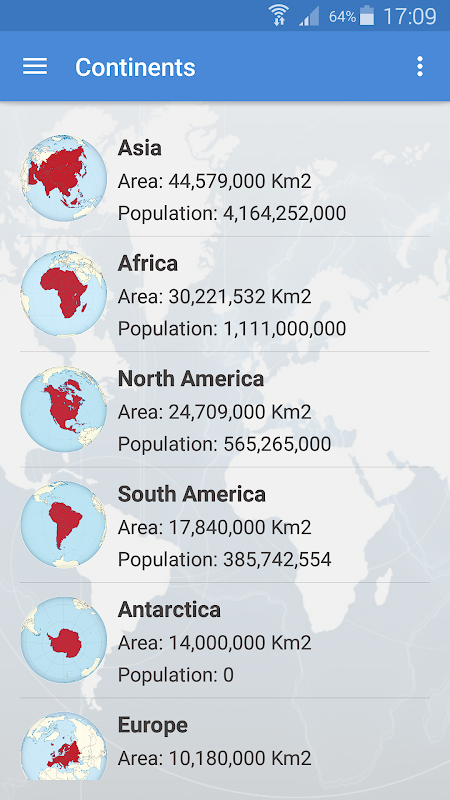 World Countries is an educational and fun app where you can learn things about countries like the capital, national flag, see pictures, location on globe, population, area and much more.