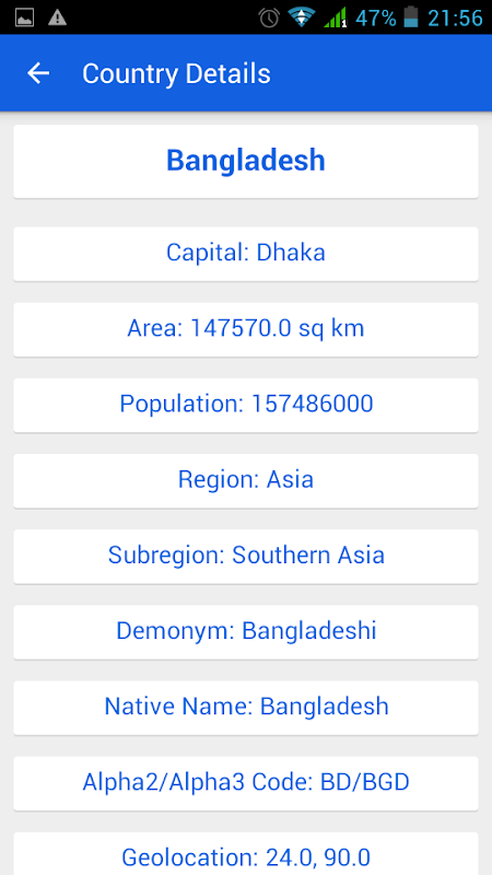 A simple app containing information of countries around the world.
