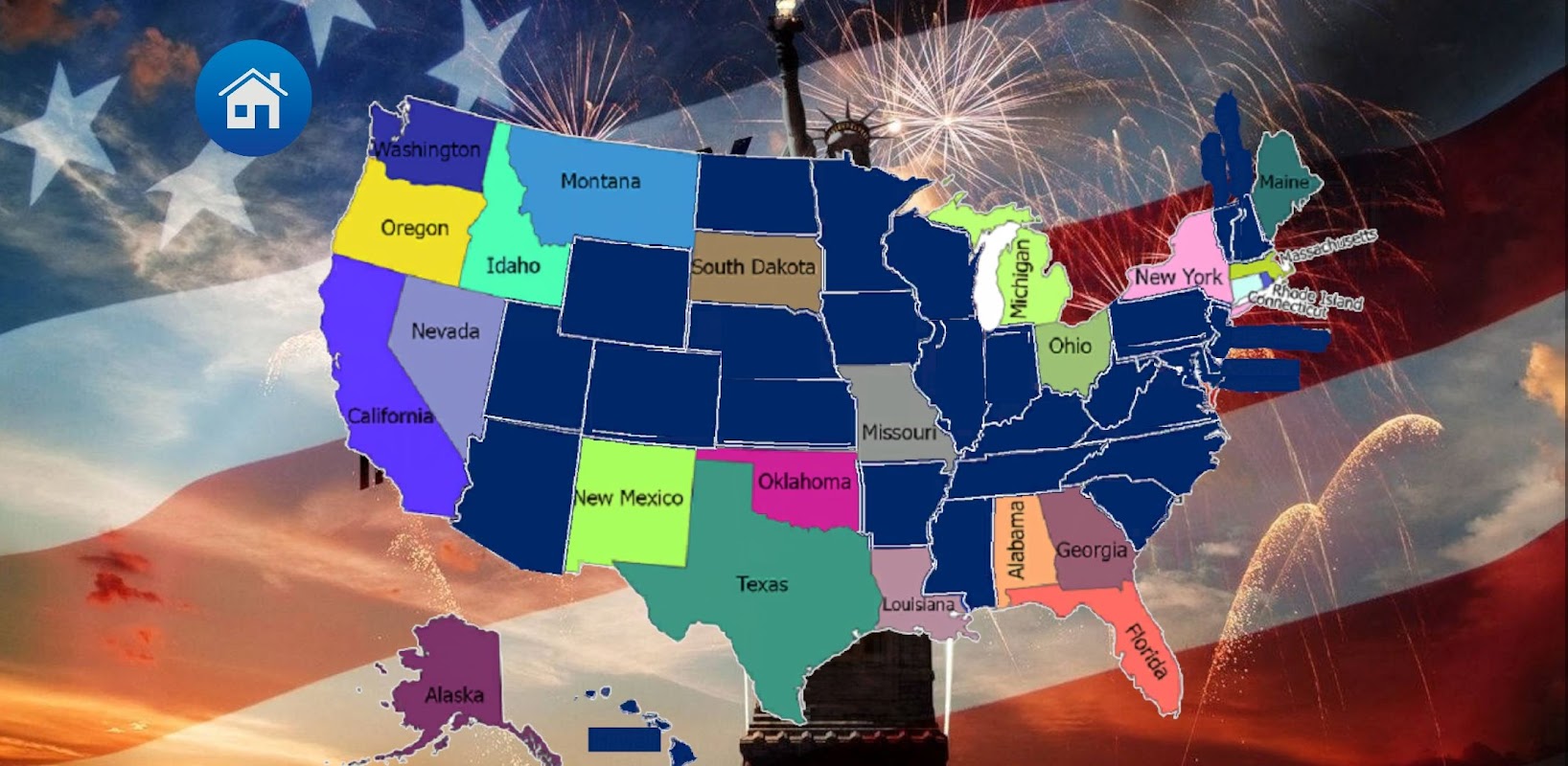 The aim from the USA map is to complete the map by choosing the correct states.