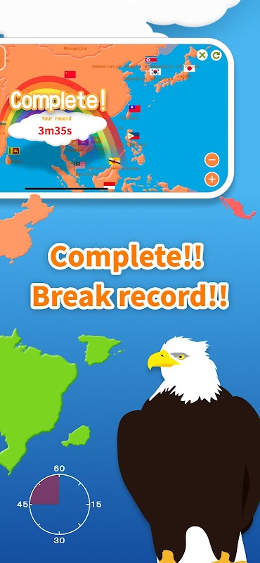 ・The fastest record of completion of each continent is displayed on the top page.