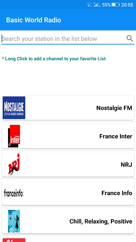 Nous proposons plusieurs moyens de trouver rapidement la station que vous souhaitez écouter. Accédez aux listes récentes basées sur votre historique d'écoute. La liste des pays est visible, avec des drapeaux nationaux. Vous pouvez choisir le pays / la région que vous souhaitez écouter.