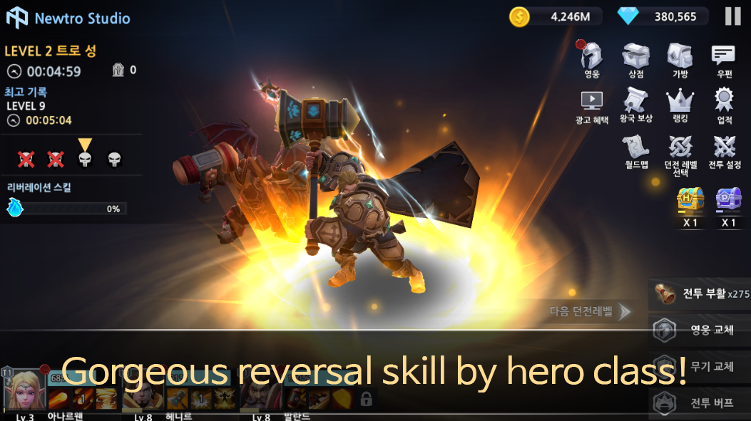 Equipped with Power Stones in Hero Armor, you can grow your hero.
