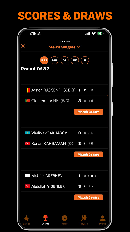 * Real-time scores and draws of WTT events around the world