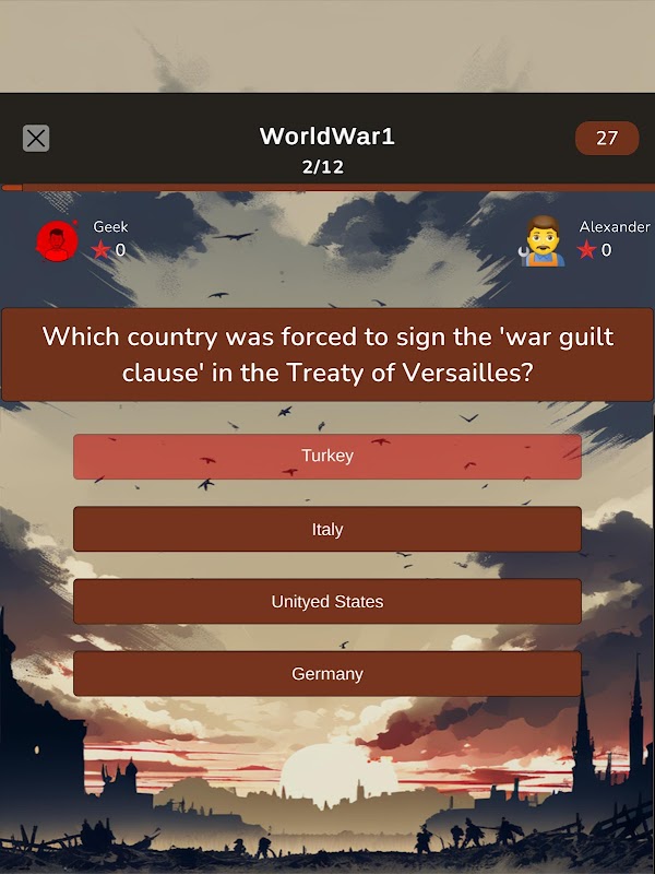 🎮 Challenge Your Friends: Gather your comrades or face off against players worldwide in intense real-time multiplayer quizzes. Strategize, compete, and dominate as you prove your expertise in World War 1 history.