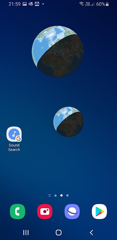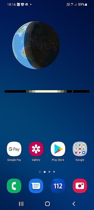 Home screen widget that display an image of the earth indicating the sun shade on the globe. The app shows data for sunrise and sunset for the current location or any selected location.