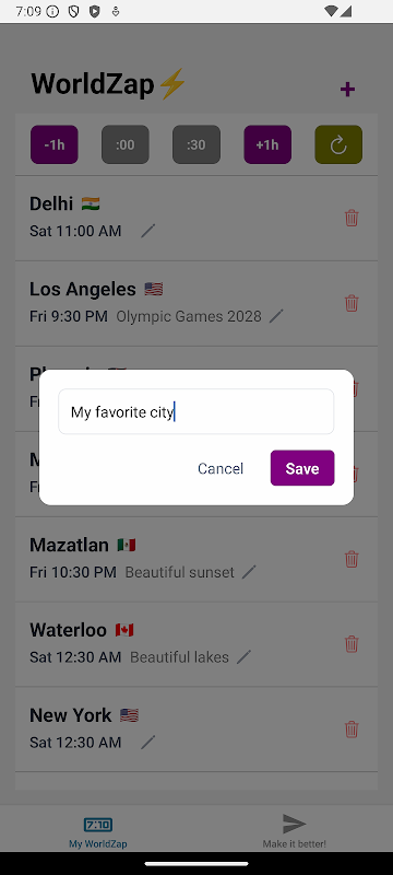 This app lets you view world times at a glance and adjust them effortlessly with a single tap. You can check the current time or quickly shift to a different time to see how it changes across multiple cities. No complex sliders—just simple buttons for instant time adjustments.