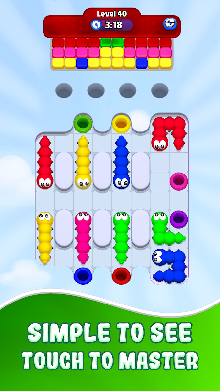 • 🐛 Slide your worm into the hole