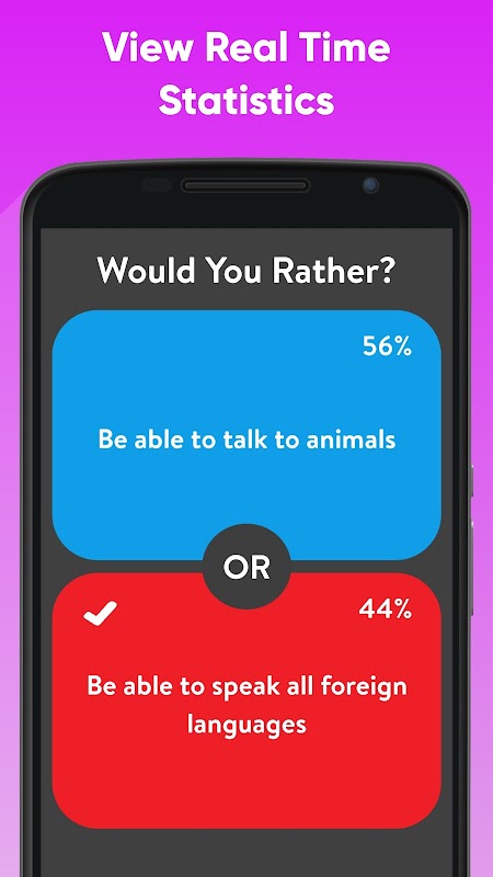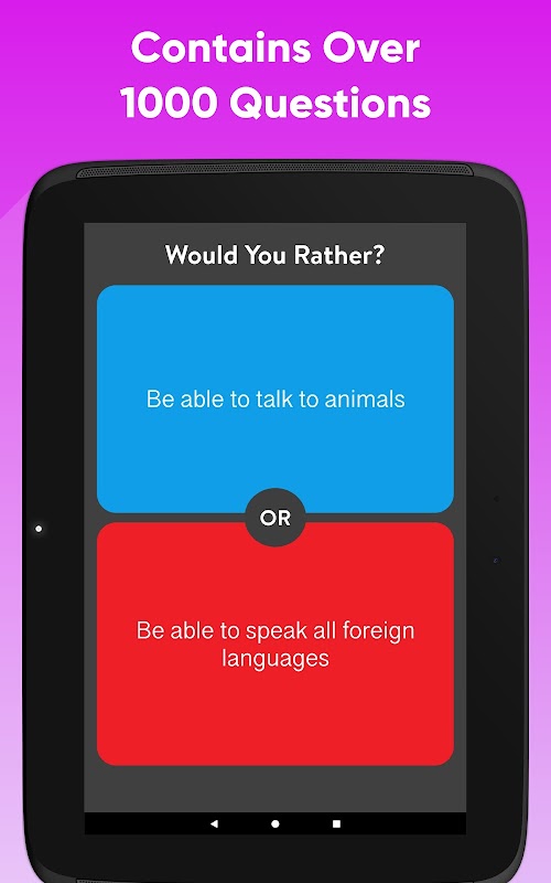 Would You Rather is the ultimate group game to play with friends! This party app contains over 1000 of the best Would You Rather questions.