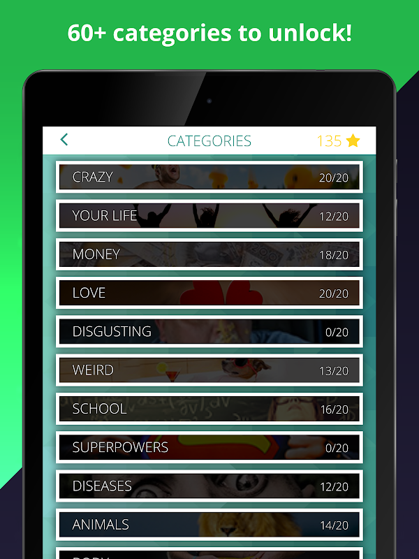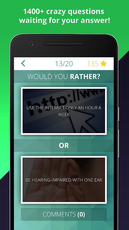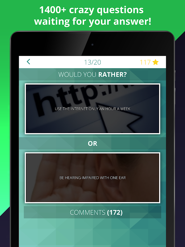 We selected the best questions "Would you rather?" and made a game in which you'll find: