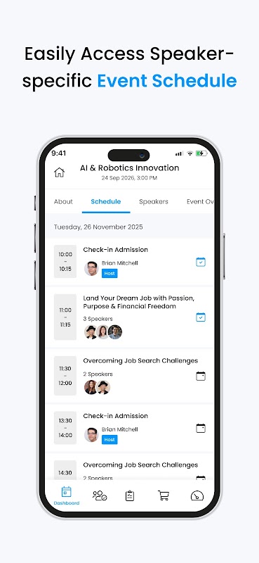 The application allows attendees to easily check-in to your events with just a right swipe and keeps you updated about the check-ins and check-outs with its green and red colored indicators.