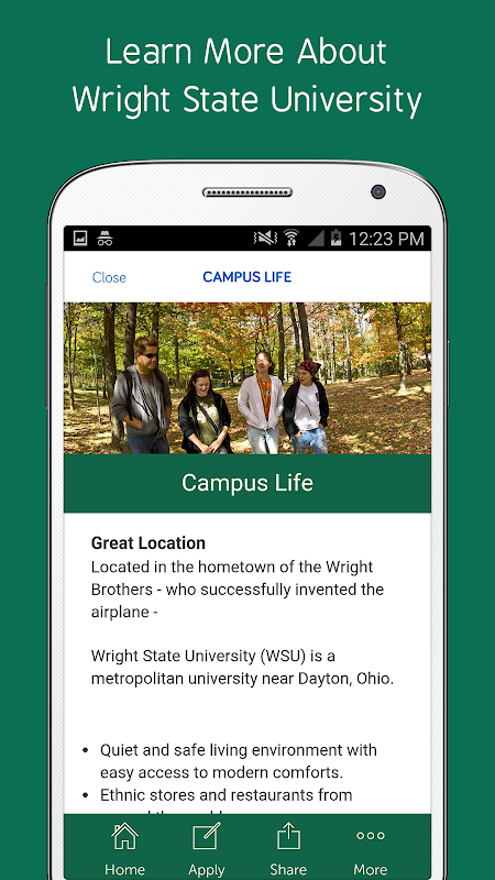 Learn why studying at Wright State University, is the right choice for you! Download our free app to access and share everything you need to know about Wright State University.