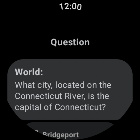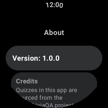 This app uses trivia data sourced from the open-source OpenTriviaQA project. All trivia content belongs to its respective sources. This app does not claim ownership of any facts, questions, or trivia data, it simply delivers them in an engaging, wearable game format.