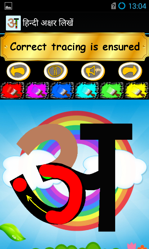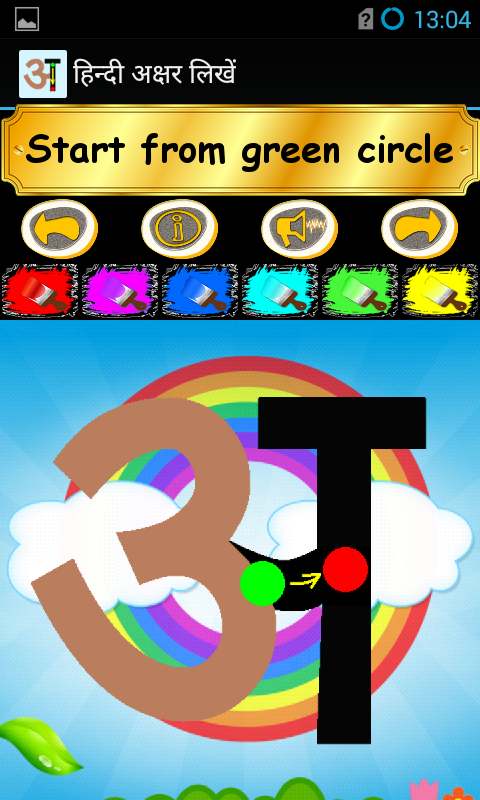 With bright colours and interactive elements, "Write Hindi Alphabets" helps to keep your child curious and with a hunger to learn. Our application will help to prepare your child for his or her upcoming education from ages 4-6. The app teaches your child to correctly trace letters with their finger - a skill that they can then translated to a pen or pencil when the time comes. With accompanying images and a choice of colours to paint with, Kids ABC is guaranteed to keep your child interested from day one to a time that they no longer need the application and knows to write all abcs. Tracing of abcs is separated into easy steps accompanied by bright arrows and our unique big green and red circles signing where to begin and where to stop tracing.
