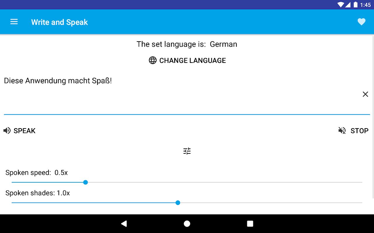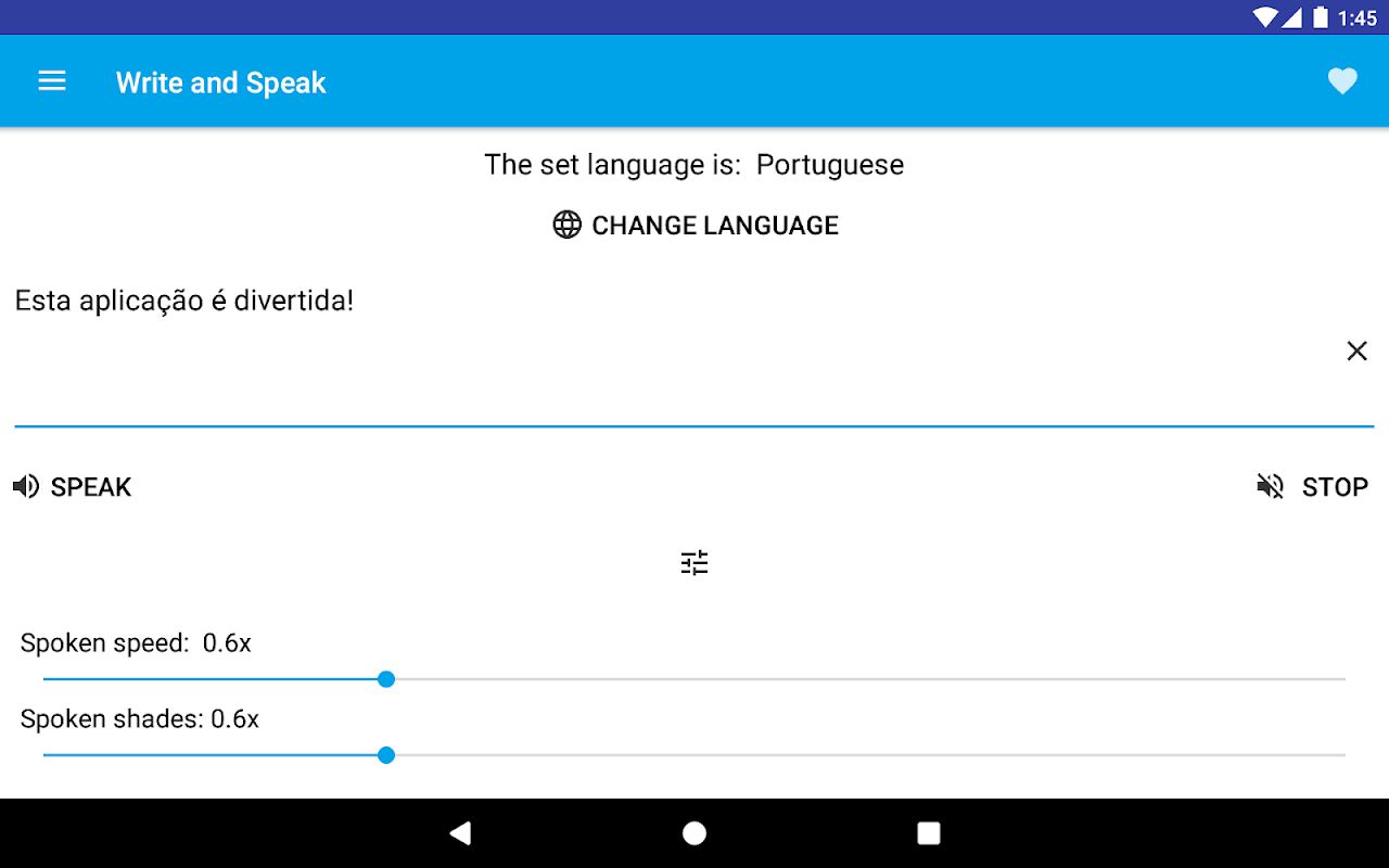 It allows you to enter a text and by pressing the speak key it is read according to the selected language. Fun and useful to know the pronunciation of a word or a phrase.