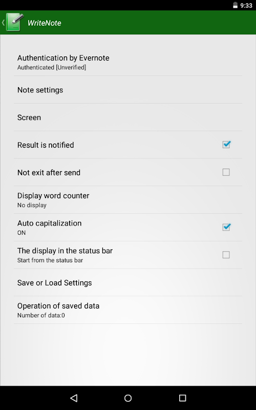Normally, when you press the send button, WriteNote is terminated, send a note of Evernote in the background.