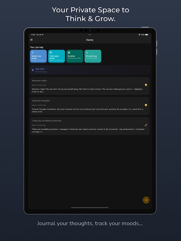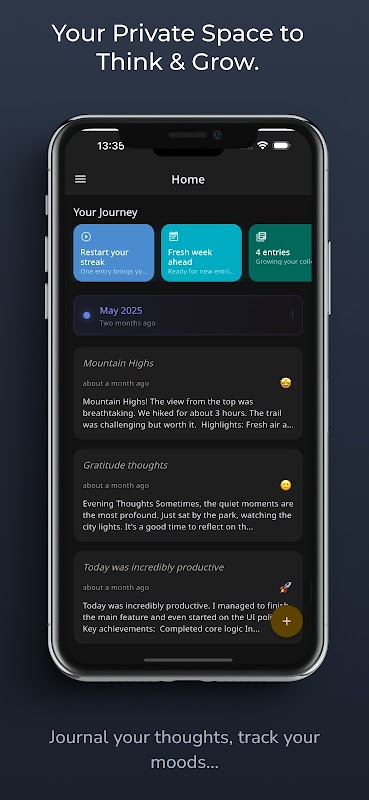 Go beyond words. Our integrated mood tracker helps you visualize your emotional patterns over time. Build powerful streaks and use our habit tracker to foster positive, lasting change.