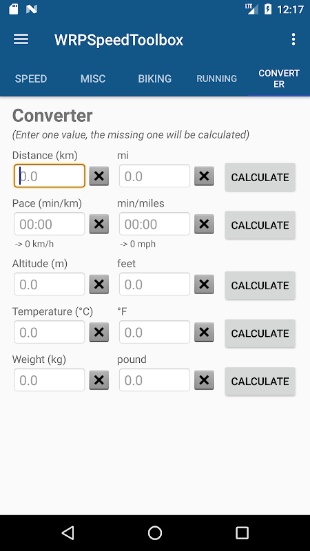 - converter (distance, pace, altitude, temperature, weight, time <-> seconds)