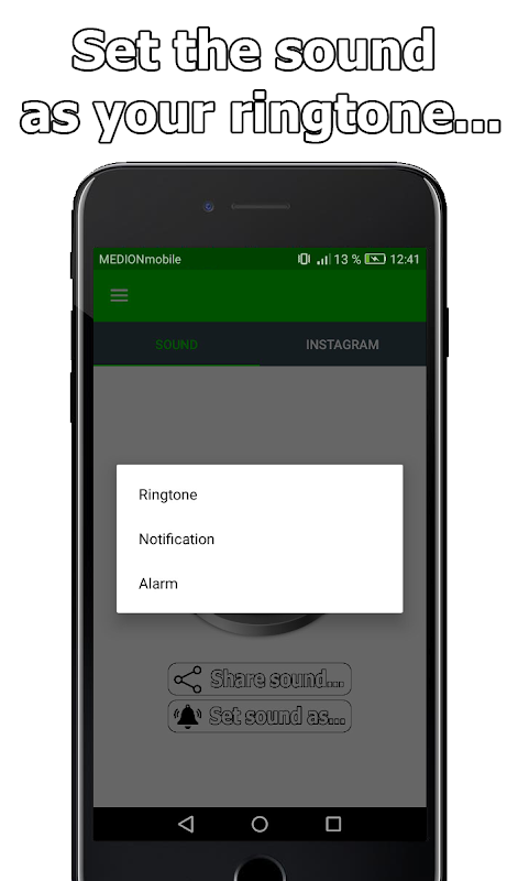 -Set the sound as ringtone, alarmtone and notificationtone.