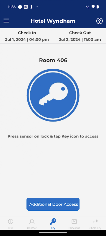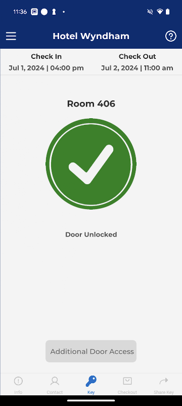 • Check-Out Details: View your check-out date and time on the mobile key, helping you stay organized and plan your departure effortlessly.