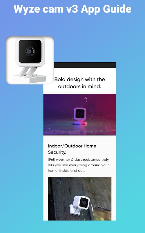 Wyze cam v3 App Guide - The Wyze Cam V3 looks similar to the Wyze Cam V2, but there are subtle differences. It sports a square black camera face as opposed to the round face found on the V2 camera, and it has rounded edges as opposed to the V2's sharp corners. Additionally, the V3 has an IP65 weatherproof rating, which makes it suitable for both indoor and outdoor use.
