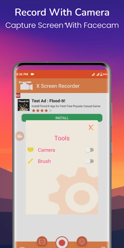 X Screen Recorder is a screen recording app to record audio and also record with camera as well.