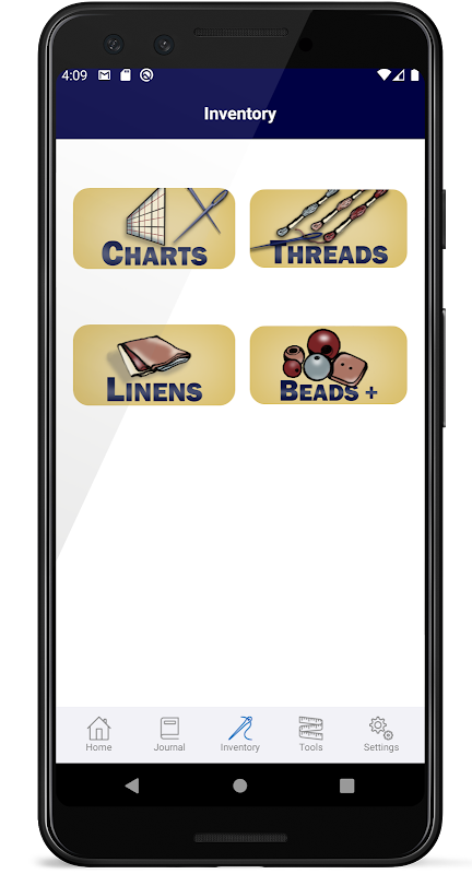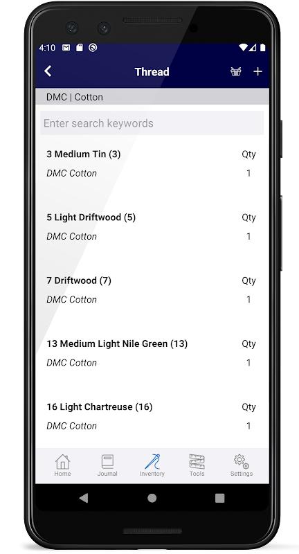 Inventory tracking for charts, threads, linens and embellishments