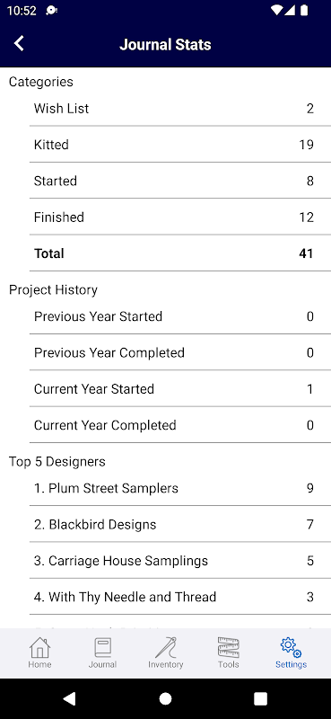 X-Stitch Plus is the best way to inventory and track all your cross stitch stash. This easy-to-use app was designed by cross stitchers for cross stitchers. Track all your projects from wish list to finished using the Journal feature. Load up to 4 photos per project. Use the inventory to track all your threads, charts, linens and embellishments. Tens of thousands of threads are pre-loaded so you don't have to type in details. Mill Hill beads are also pre-loaded so you can quickly add them to your inventory. Keep multiple photos for your charts and embellishments. Use the fabric calculator to easily determine fabric dimensions in inches and centimeters. The shopping cart helps ensure you remember exactly what you need when you're at the shop. And of course, these modules are interlinked so you can quickly share info between them, e.g., quickly create a Journal entry from one of your charts. Want to share? X-Stitch Plus supports sharing via Facebook, Twitter, E-Mail, Text and more. Another key benefit of X-Stitch Plus is all your data is stored in the cloud. View and update your data from any of your devices and they're all in sync. You can even access data from the original X-Stitch app. No need to reenter data. Check out the best cross stitch inventory app today with a 7-day free trial!