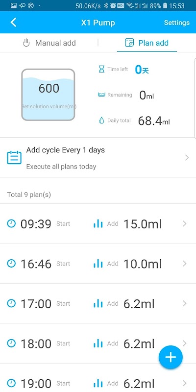 This application is used to control Kamoer X1 pump, A mobile phone app can control the titration manually via a Bluetooth-controlled single-head titration pump. It can also set up a titration plan for regular titration. You can set up a cycle titration according to the number of days, or you can set up a weekly titration.
