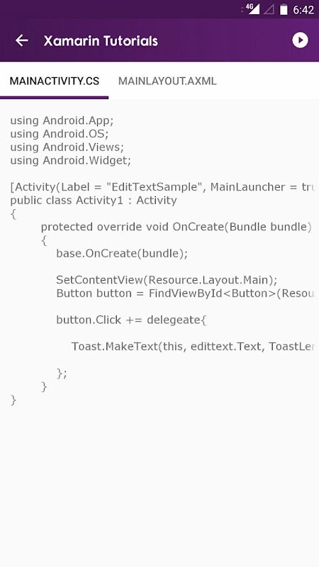The developer can analyse the working of Android examples and relate it with the Xamarin/Visual Studio. While developing Applications for Android users just need to copy and paste the codes in the respective files in Xamarin/Visual Studio. All the android examples are tried and tested in Xamarin/Visual Studio.
