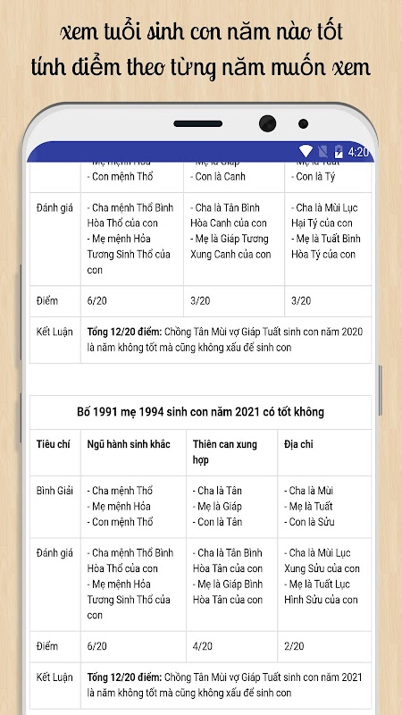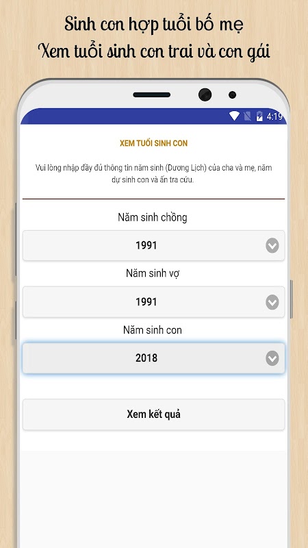 Xem tuổi sinh con hợp bố mẹ APK Information