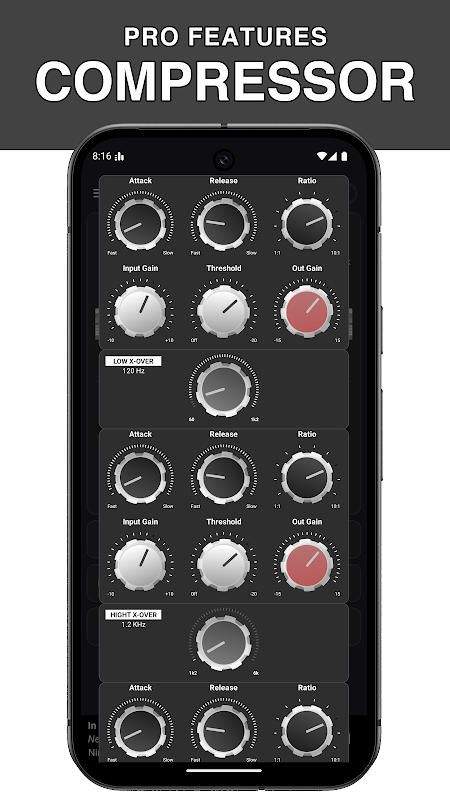 XEQ includes a complete suite of professional audio processors, including an exclusive Multiband Compressor — a premium feature rarely available in mobile equalizers — delivering cleaner, more controlled and more powerful sound for your headphones.