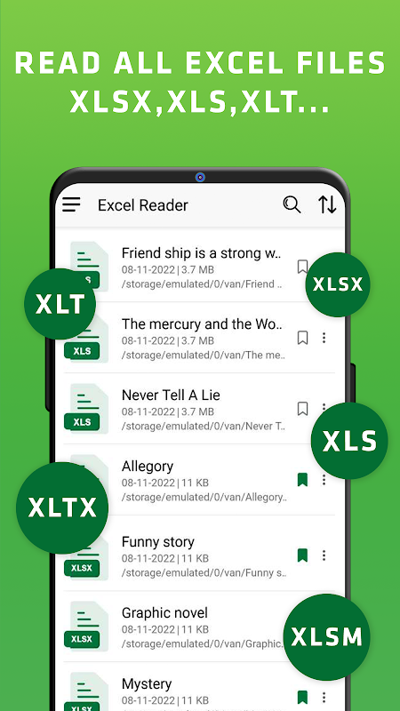 ✅ Read all documents, excel spreadsheets: .XLS/.XLSX/.XLSM/ .XLT/.XLTX in the device