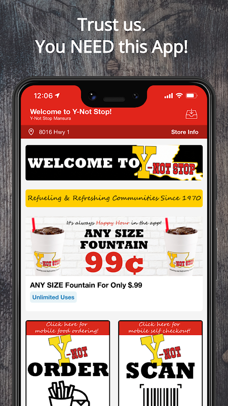Save money at Y-Not Stop stores with great coupons on gas, snacks, and more! Simply tap the orange redeem button and show your phone at purchase to redeem your coupons.