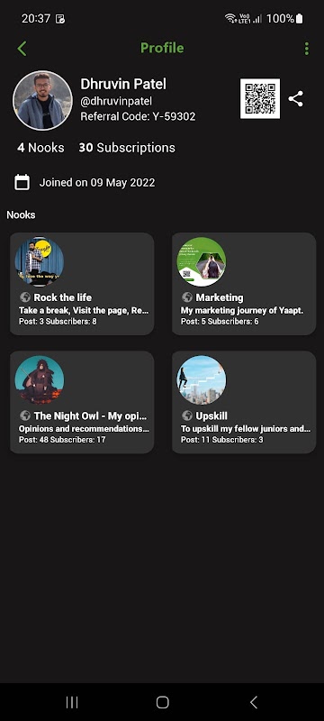Get Yaapt and start with a new social experience with Nooks. You can create a Nook for each of your personas (fun, art, family, travel, music, opinions, hobbies...).