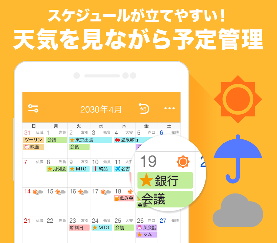 In addition to checking and registering your schedule, you can also view the weather and Rokuyo for the week, making schedule management very convenient.