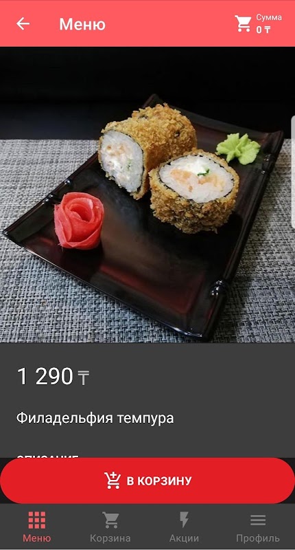 We offer exquisite Japanese cuisine to your table. A varied, constantly expanding menu, the most affordable prices in Aktobe and a flexible system of discounts combined with high quality workmanship.