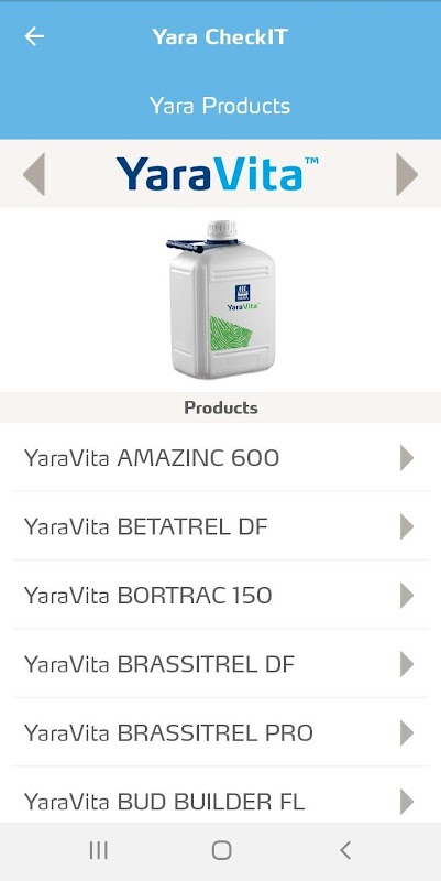 Yara CheckIT is an agricultural smartphone app that gives farmers a photographic library of the crops to allow a simple and fast identification of possible nutrient deficiencies. Once the cause of the deficiency is established, the app gives the further information on how the deficiency affects that crop, what soil types are prone to this type of deficiency and what factors will make a deficiency worse. CheckIT provides a fertilizer recommendation to treat the identified deficiency, as well as alternative products which allow preventive treatment for the following growing season.