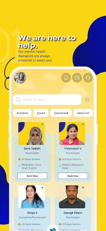 -- Schedule future appointments and avail emergency assistance in a regional language with a therapist at any point in time. Clients can schedule sessions through the website or mobile application from any country 24/7.