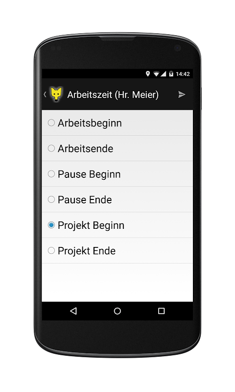 With the Yellow Time Manager app from YellowFox you have the option of working, breaks and project time mobile and location-independent basis over Android and transferred directly into the Web application Yellow Time Manager. Your time records are always in sync with the web application, manual trimming is not necessary.