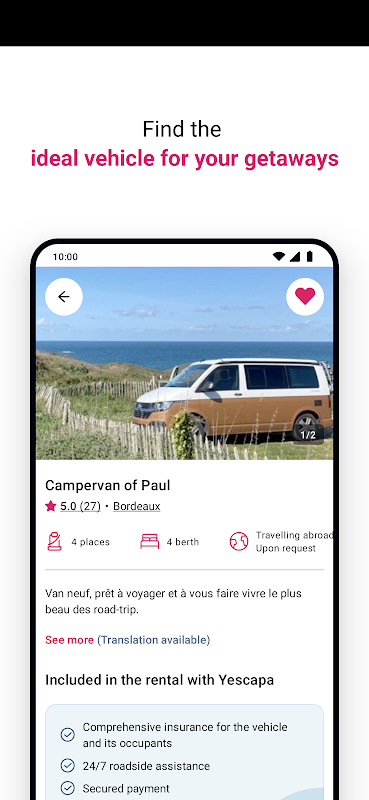 Please feel free to share your rental experience with Yescapa by leaving a review and rating on the Play Store.