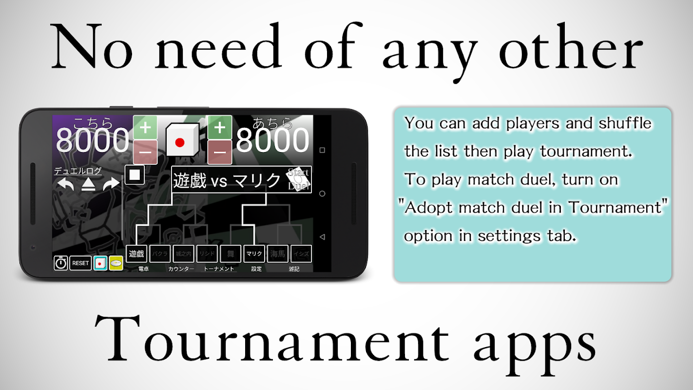 Essential dueling feature : dice, coin, counter, stop watch(40 min timer), calculator