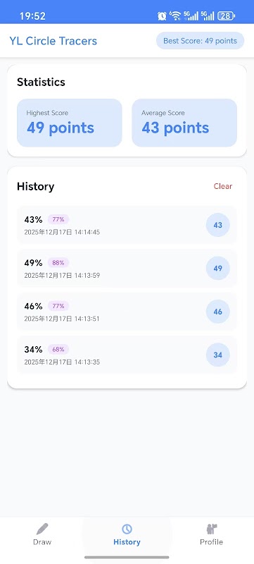 Circle Challenge is a simple and fun casual game thattests your ability to draw perfect circles. Draw circlesby touch, and the system will automatically score andprovide roundness percentage.