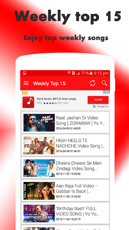 The content provided in this app is hosted by YouTube and is available in public domain. We do not upload any videos to YouTube or not showing any modified content. This app provided the organized way to select songs and watch videos.