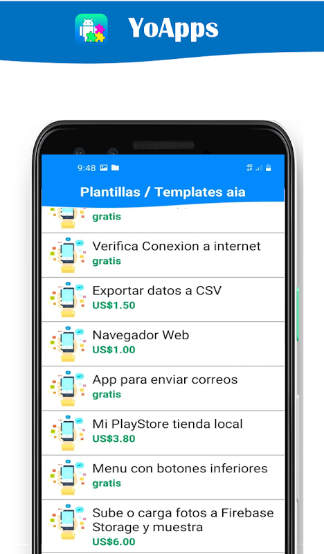 The YoApps application offers an interactive menu, free and paid templates, free questions and answers, to answer all your questions about applications, courses available in future updates and personalized services to design your application.