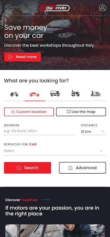 YouDriver is an online community enabling you to find services on the go, request quotes, buy - sell accessories and talk about motors. A new way of thinking about the automotive world.