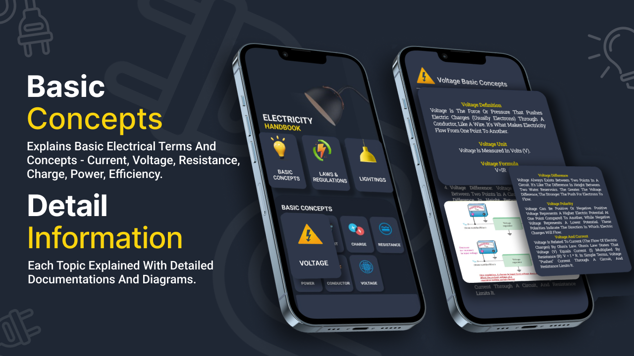 Electrical Calculations: Perform critical electrical calculations with ease. Our app includes tools for calculating voltage, current, resistance, and power to ensure your projects are both safe and efficient.