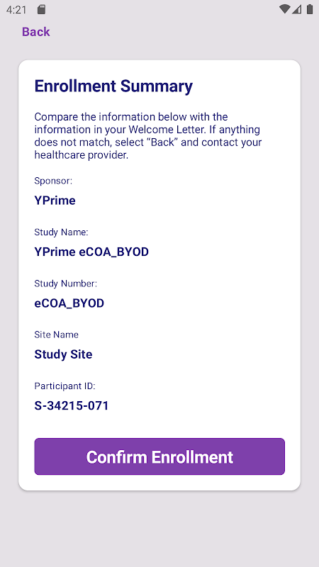 Log in, review, and finish clinical study activities at places and times that fit your daily lifestyle. Download this app on your personal device. Use the enrollment ID provided by your healthcare provider to create your unique login code, then finish your training. Stay connected to your clinical study by using YPrime. This app is only available to those taking part in a sponsored clinical study.