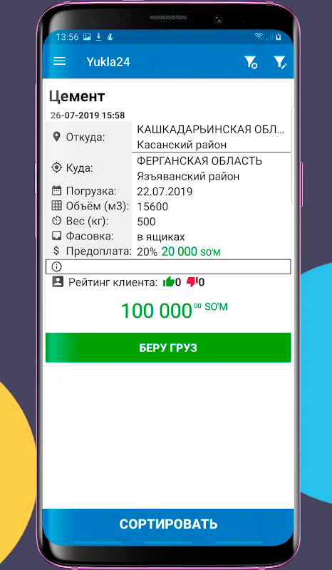 The application was created to facilitate the sending and search of goods by both customers and drivers.
